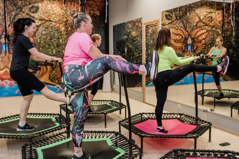 Jumping rühmatreening on lõbus kardiotreening minibatuutidel, kus kombineeritakse omavahel hüppamist aeroobikasammude ja jõuharjutustega.