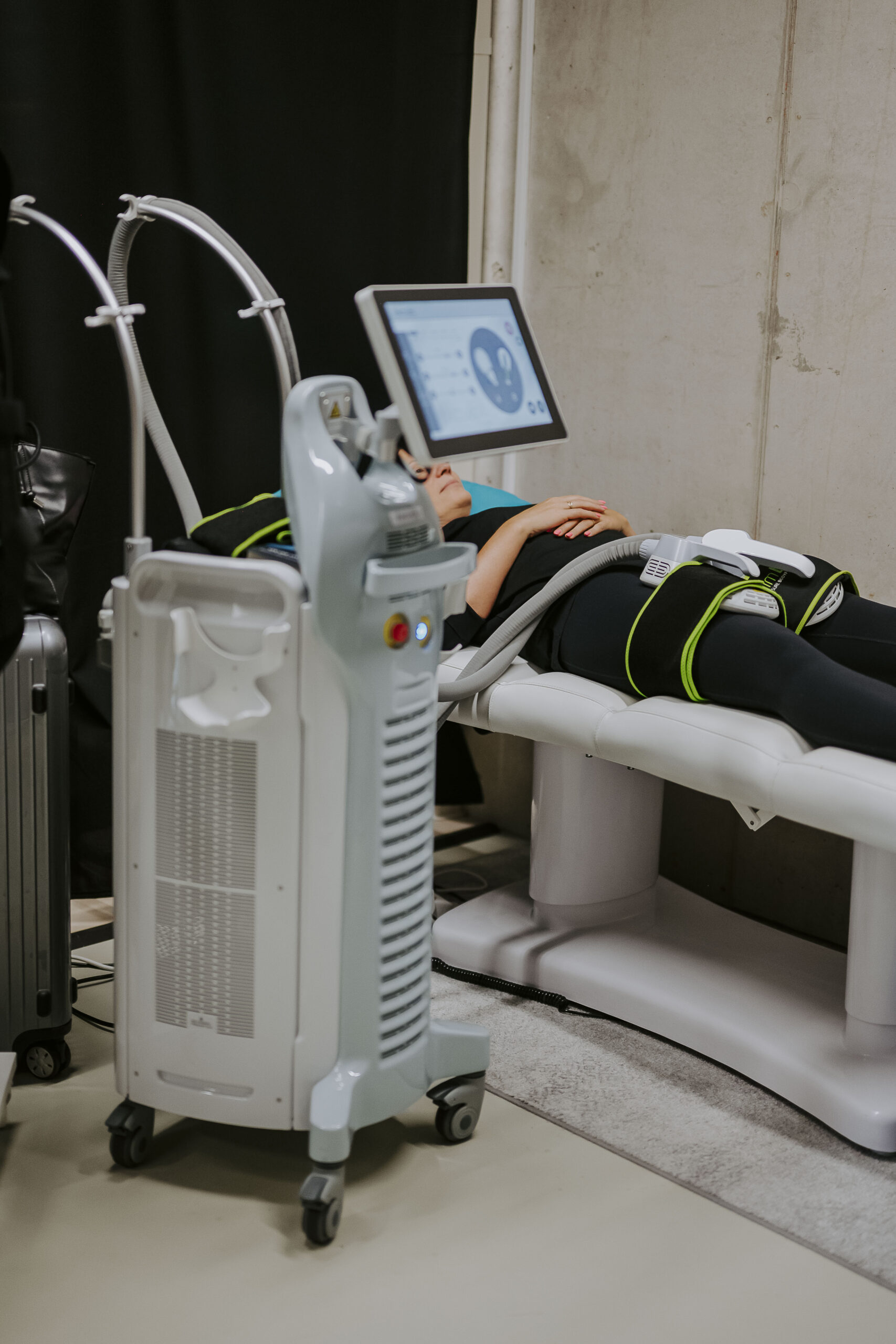 I-Sculpt FMS masinas on omavahel ühendatud EMS ja magnetstimulatsioon, mis aitavad tekitada üheaegselt nii tugeva treeningu kui lipolüüsi ehk rasvapõletuse efekti.